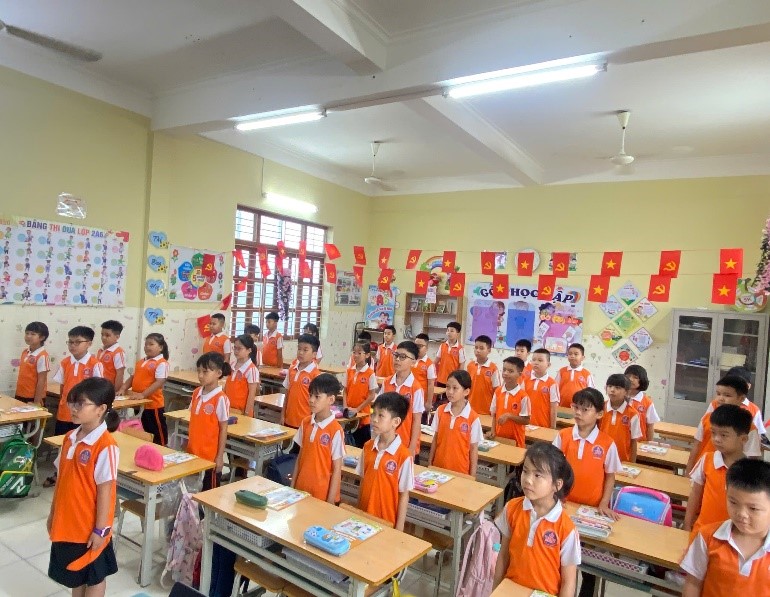 Hoạt động này giúp các em thêm yêu Tổ quốc, yêu trường lớp và rèn cho các em nề nếp, sự tự tin ngay từ những ngày đầu đi học.