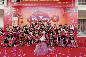 Trước thềm năm mới, sân trường Tiểu học Nam Sơn rộn ràng hơn bao giờ hết với các tiết mục văn nghệ đặc sắc do học sinh khối 5 biểu diễn. Dưới sự biên đạo khéo léo và đầy tâm huyết của cô giáo Minh Phương, tiết mục múa “Gieo quẻ và Óng lòng sía” đã mang đến cho người xem một bức tranh Tết giàu bản sắc và cảm xúc.