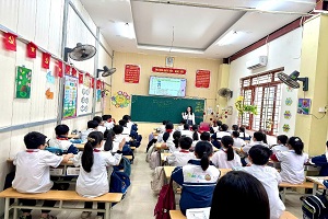 Tiết học Tiếng Anh lớp 5 với nội dung Unit 7: SPORTS – Lesson 2 đã diễn ra trong không khí học tập tích cực, sôi nổi và đầy hứng thú. Bài học tập trung vào chủ đề hoạt động thể thao và cách diễn đạt tần suất thực hiện hoạt động trong tuần thông qua các từ khóa như once a week, twice a week, three times a week, every weekday…Trong tiết học, học sinh được luyện nghe – luyện nói, tham gia trả lời câu hỏi chung và thực hành giao tiếp theo cặp, theo nhóm. Đặc biệt, các em đã hoàn thành bảng thời gian biểu cá nhân một cách sáng tạo, trình bày đẹp mắt và tự tin trình chiếu, thuyết trình trước lớp về thói quen sinh hoạt của mình. Không khí lớp học trở nên sôi nổi khi học sinh bên dưới đặt câu hỏi và giao tiếp trực tiếp với bạn trình bày, tiêu biểu như câu hỏi: How often do you go to school? và nhận được những câu trả lời rõ ràng, đúng cấu trúc, phù hợp với nội dung bài học. Tiết học diễn ra nhanh gọn, sinh động nhưng đạt hiệu quả cao, giúp học sinh mạnh dạn giao tiếp, vận dụng tốt kiến thức vào thực tế và thêm yêu thích môn Tiếng Anh.