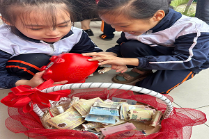 Ngay từ đầu buổi, các bạn học sinh đã háo hức quây quần xung quanh chú lợn của lớp. Dưới sự hướng dẫn của cô giáo, chú lợn được mở ra và những tờ tiền giấy được các bạn cẩn thận lấy ra, cùng nhau đếm lại. Mỗi tờ tiền tuy không lớn nhưng đều chứa đựng tấm lòng sẻ chia, tinh thần tiết kiệm và tình cảm của các bạn nhỏ lớp 2A4.