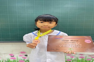 Hôm nay, cô Nhật Lệ vô cùng vui mừng và tự hào khi đón nhận tin vui từ các em học sinh của mình. Hai học sinh xuất sắc của lớp là Thu Hương và Thảo Vy đã tham dự kì thi Toán Quốc tế TIMO và đều đạt được thành tích đáng tự hào. Thu Hương đã xuất sắc giành được Huy chương Vàng. Thành tích ấy là kết quả của sự chăm chỉ, nỗ lực và niềm say mê học toán của em trong suốt thời gian qua. Cô luôn thấy ở Thu Hương một tinh thần học tập nghiêm túc và bền bỉ. Mỗi bài toán khó đối với em đều là một thử thách thú vị để chinh phục. Bên cạnh đó, Thảo Vy cũng đã mang về cho lớp niềm vui lớn khi đạt được Huy chương Đồng. Dù kết quả là màu huy chương nào thì đó cũng là trái ngọt của sự cố gắng không ngừng. Cô rất trân trọng tinh thần học tập chăm chỉ và ý chí vươn lên của Thảo Vy. Trong lớp học, hai bạn luôn là những học sinh gương mẫu và ham học hỏi. Các em không chỉ học giỏi mà còn rất khiêm tốn và hòa đồng với bạn bè. Thành tích của các em hôm nay không chỉ là niềm vui của riêng bản thân các em. Đó còn là niềm tự hào của tập thể lớp 3A1. Cô tin rằng phía sau những tấm huy chương là rất nhiều giờ học tập miệt mài. Những nỗ lực thầm lặng ấy hôm nay đã được đền đáp xứng đáng. Cô cảm thấy thật hạnh phúc khi được chứng kiến sự trưởng thành của các em từng ngày. Các em chính là niềm tự hào của cô và của cả lớp. Thành công hôm nay sẽ là động lực để các em tiếp tục cố gắng nhiều hơn nữa. Con đường học tập phía trước vẫn còn rất dài và đầy thử thách. Nhưng cô tin rằng với sự chăm chỉ và niềm đam mê, các em sẽ còn tiến xa hơn nữa. Mong rằng Thu Hương và Thảo Vy sẽ luôn giữ vững tinh thần học tập đáng quý ấy. Hãy tiếp tục nuôi dưỡng tình yêu với những con số và những bài toán thú vị. Cô tin rằng những ước mơ đẹp của các em sẽ dần trở thành hiện thực. Cô chúc hai con luôn tự tin, chăm chỉ và tỏa sáng trên hành trình học tập của mình. Và cô cũng hy vọng thành tích của hai con sẽ là nguồn cảm hứng cho các bạn trong lớp cùng cố gắng. Lớp 3A1 luôn tự hào về Thu Hương và Thảo Vy.