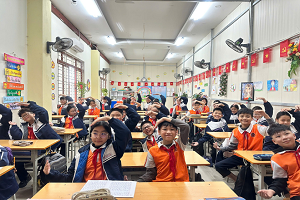 Không khí lớp học trở nên vô cùng hào hứng khi từng bạn tập trung suy nghĩ, nhanh tay đưa ra đáp án và hồi hộp chờ kết quả. Trò chơi không chỉ đòi hỏi kiến thức mà còn cần sự nhanh nhạy, tự tin và khả năng tập trung cao độ. Những “phần lộc” nhỏ xinh được trao tặng đã làm cho niềm vui ngày Tết càng thêm trọn vẹn.