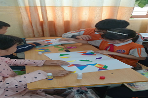 Trong tiết học, cô giáo hướng dẫn học sinh cách đặt ê-ke, cách giữ thước cố định và cách dùng bút chì để vẽ thật chính xác. Sau đó, các em được thực hành theo nhóm: mỗi nhóm đã tạo ra các hình thù ngộ nghĩnh như: chú mèo, máy bay, lạc đà, con cá. Nhờ hoạt động này, chúng em hiểu rõ hơn thế nào là hai đường thẳng song song và cách vẽ sao cho đúng.